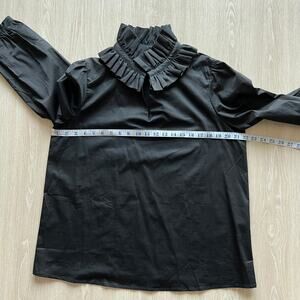 Tuckernuck Ruffle Neck Bouvier Blouse Large Black Preppy