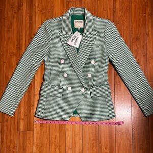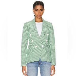 NWT L'AGENCE Kenzie Double-Breasted Blazer Checked Green Grass Size 2