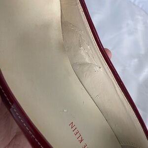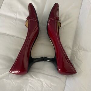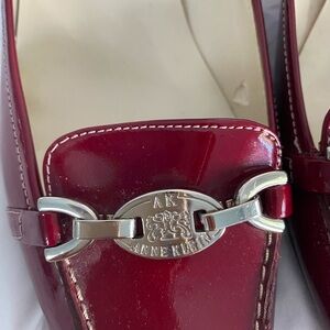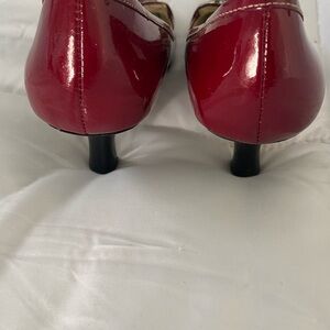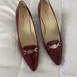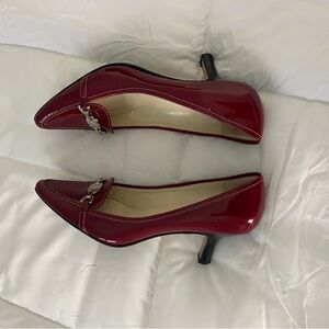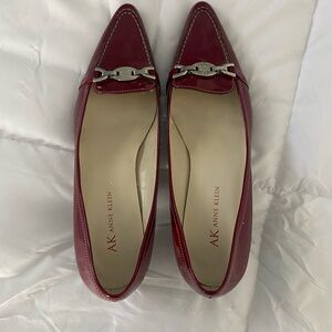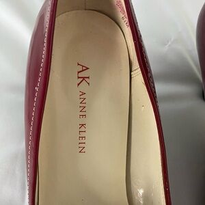 ANNE KLEIN Deep Red Patent Leather Heels w/ Silver Metal Logo. Elegant & Classy!