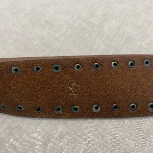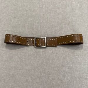 Calvin Klein Studded Genuine Leather Belt Square Buckle Bohemian Size S Brown
