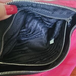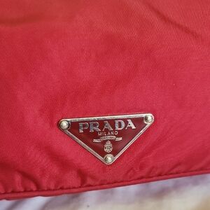 This Vintage Prada shoulder bag showcases a striking combination of red and orange hues, embodying the brand's signature luxury style. Crafted for practicality and elegance, it features a spacious interior ideal for everyday use. The bag is adorned with the iconic Prada triangle logo, making it a standout accessory for any occasion.