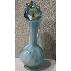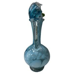 Vintage Fenton Art Glass Aqua Opalescent Fern Vinegar Cruet W/ Original Stopper - BEAUTIFUL!