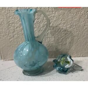 Vintage Fenton Art Glass Aqua Opalescent Fern Vinegar Cruet W/ Original Stopper