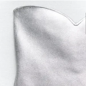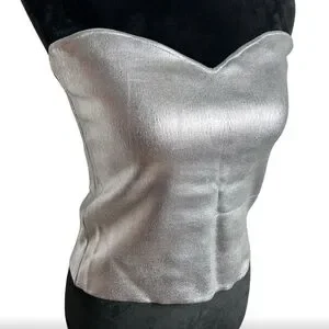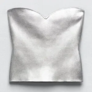 ZARA Silver Foil Metallic Strapless Tube Crop Top with sweetheart neckline.