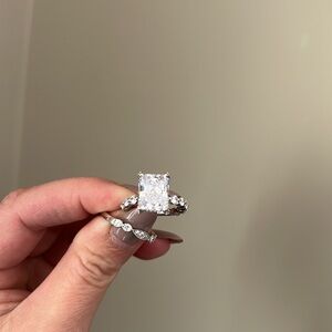 Brand new in box, 925 stamped wedding ring set, radiant and sparkly stone,