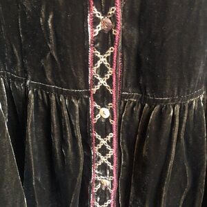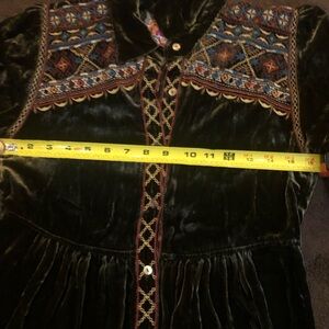 Elegant velvet top with intricate embroidery. Features a rich green color with multicolor accents. Perfect for adding a touch of sophistication to any outfit.