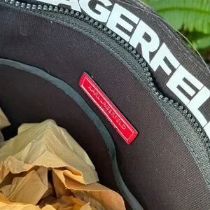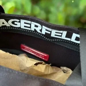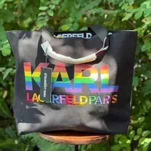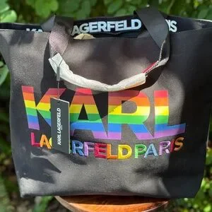 Add a pop of color to your collection with this authentic Karl Lagerfeld rainbow canvas tote! The front features bold “Largerfeld Paris” embroidery, making it a standout piece for any outfit. Spacious and practical, this tote measures approximately 13” tall, 19” across, and 5.5” wide at the base—perfect for everyday essentials, work, or travel.