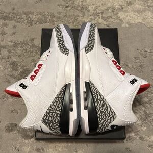 I only wore them once briefly. Look exactly as pictured. These are the Iconic sneakers Micheal Jordan wore when he dunked from the foul line which is represented on the bottom of the left shoe.