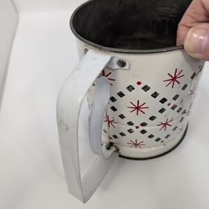 Vintage Atomic Metal Flour Sifter White with Red Black Diamond Pattern