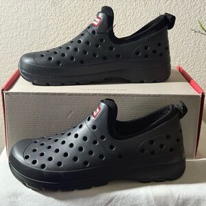 Step into effortless style with Hunter's black lightweight outdoor shoes, designed for easy slip-on convenience. These shoes boast a sleek, minimalist design perfect for any casual occasion, offering both comfort and durability.