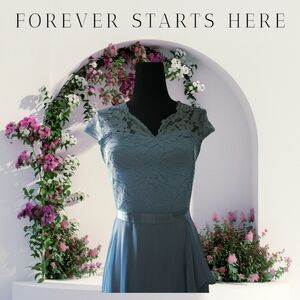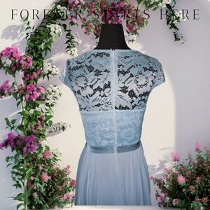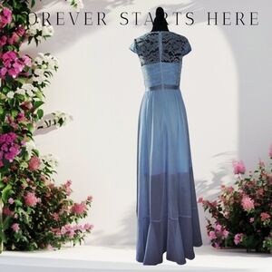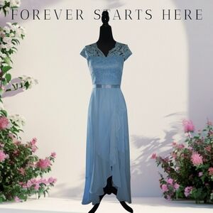 Blue Asymmetrical High-Low Maxi Dress with Flutter Cap Sleeves