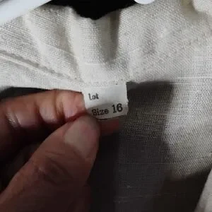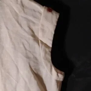 Stylish cream sleeveless vest with button-up front. Perfect for layering. has belt loops at waist.
