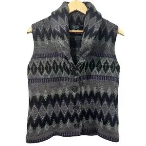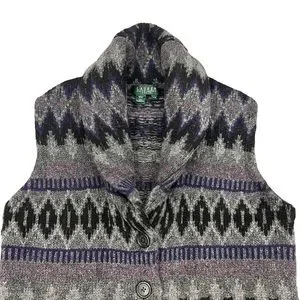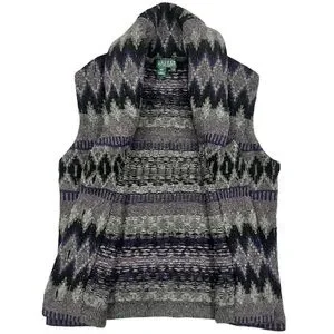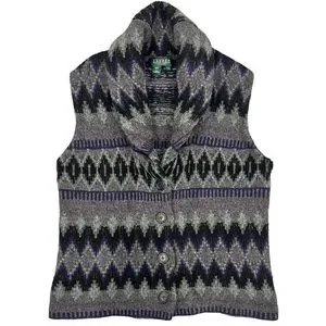 Lauren Ralph Lauren Women’s 100% Lambswool Vest Tribal Geometric Grey Purple