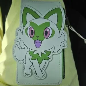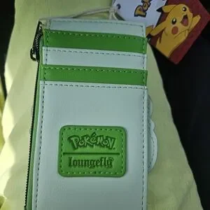 Charming Loungefly wallet with Pokémon theme. Features vibrant green and white design. Perfect for fans.