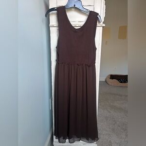chocolate brown, Y2K, brown dress, midi dress, sleeveless, knit, chiffon, stretchy, casual, elegant, versatile, flowy, V-neck, scoop back, tiered, minimalist, quiet luxury, neutral, earth tones, officecore, indie sleeze, whimsigoth, cottagecore, preppy, timeless