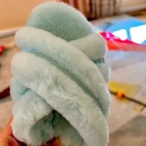 This slide sandal updated with cross-straps of plush shearling pairs perfectly with loungewear for weekend relaxation.