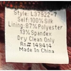 Silk Dress: Pit to pit 19"; waist circumference 23"; full length 52"; length of sleeves 17"; Under Slip: Pit to pit 20"; full length 39" (all measurements are approximate) Silk Dress: 100% Silk; Lining: 87% Polyester, 13% Spandex; Recommended on Tag: Dry Clean Only