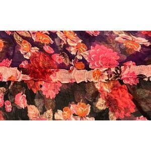Womens, Size: Extra Large Color: Black with Purple, Pink, Red Floral Pattern NWOT - Super Good Quality Condition - no rips, tares, stains - Like New! Stunning gorgeous sheer Silk Maxi dress & Polyester under slip - cocktail/party, wedding guest or other dressy occasions; Fall & Winter; pares nicely with heels; elastic at wrist; elasticized waist with tie/tassel; flares from waist-lots of fullness; ruffle toward bottom; Under Slip/Lining: Sleeveless, adjustable spaghetti straps, V-neck