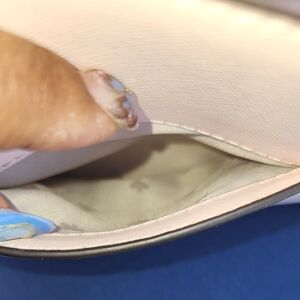 Pale pink. Excellent condition, the bag, handles, hardware, and straps.