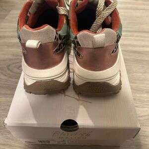 Step out in style with these chic leopard print sneakers featuring eye-catching gold accents. Perfect for adding a bold touch to any outfit.