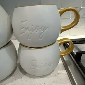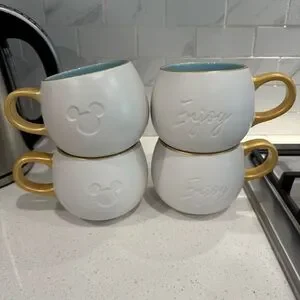 Disney Home White, Gold, Blue Whimsical Mug Mickey Mouse Ears Icon Enjoy” (A)