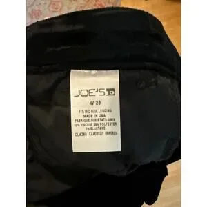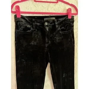 Joe's Jeans, stretchy mid rise leggings, black, velvet, with zipper and button. Size 28 which can fit size 4 or 6. Very soft, good stretch. Perfect condition. Whimsygoth.