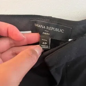 Sleek black office slacks with a white stripe down the side leg. Perfect office casual piece!