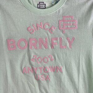 Born Fly Mens T-Shirt Size L Embroidered Mint Green 100% Cotton NWT 48
