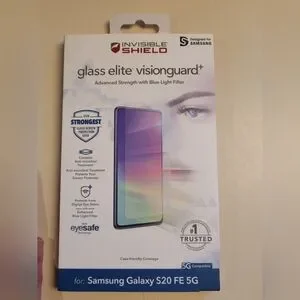 Protect your Samsung Galaxy S20 FE 5G with the Glass Elite VisionGuard+. Featuring advanced blue light filtering and superior strength, this screen protector ensures your device stays safe and your eyes comfortable.