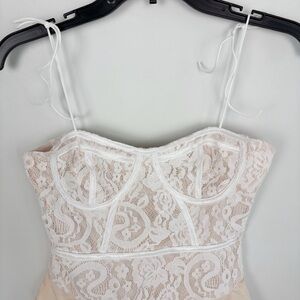 Superdown Stasia Lace Bodysuit in White & Nude Size S