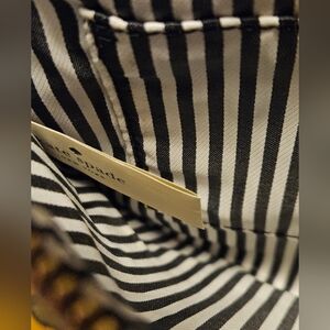Stylish Kate Spade wristlet with black stripes on a canvas background. Part of the By The Pool collection. Features a playful yellow pineapple design with bling accents! Perfect for adding a fun touch to any summer outfit. Excellent used condition.