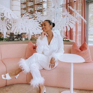 Nadine Merabi "Darcie" Feather Pajamas in White - Size S/M