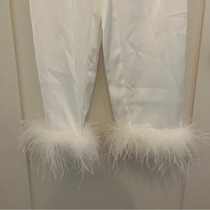 -White feather trim to cuff on the trouser and the shirt