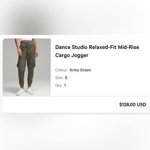 Lululemon Dance Studio Mid-Rise Cargo Jogger in Army Green - Size Small
