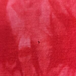 Tiny pin prick hole on material just below left of graphic (as seen in picture)