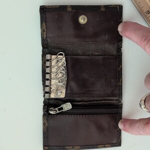 Shows signs of wear. See all photos for details and wear. Still holds keys no problem and zipper and snap n work great