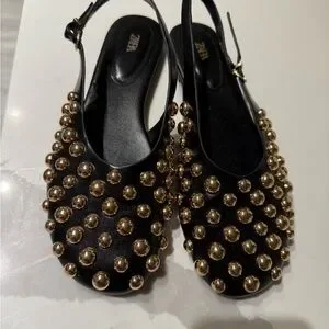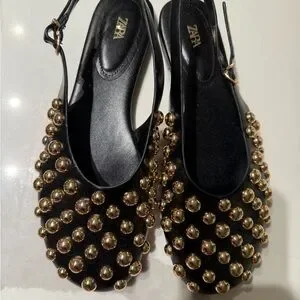 Zara Black and Gold Studded Flats