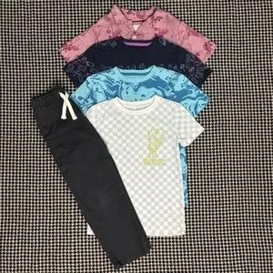 Kids bundle | 4 shirts + 1 pair of pants | Cat & Jack shirts size 6/7 | Cat & Jack pants size 6 | Checkered Sonic shirt is labeled size small - slim fit closer to a size 5/6 (also from Target) | Everything in good worn condition | Light wear on knees of pants - see photos