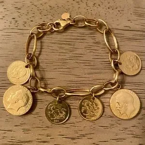 ITALY 925 stamped Sterling Silver 24k gold-plated Euro Coin Charm Bracelet NEW