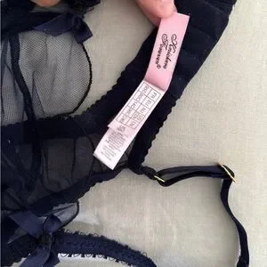Experience the allure of the Agent Provocateur Black Sheer Mesh Bra, featuring delicate scalloped edges and feminine ruched details. This sophisticated piece offers underwire support and adjustable straps for a perfect fit, making it a luxurious addition to your intimate collection. Bottoms size 4