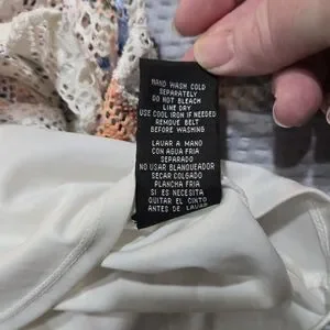 This elegant sundress by R&K features a vibrant orange and blue color palette, perfect for a beach party or cocktail occasion. The cap sleeve design with a scoop neckline and A-line silhouette offers a flattering fit. Its artistic floral print adds a touch of sophistication and charm to your wardrobe. Has loops for a belt, but the belt is missing.