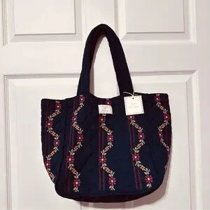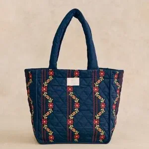 Brand new with tag attached. This is part of the first collaboration of 2025: Sezane x Lucia Vergara, the visionary behind Apres Ski. This is a medium tote bag with embroidery. Diamond quilting. The main material is 100% cotton & the lining is 100% recycled cotton. Two inner slip pockets; one large & one smaller pocket. Made in India.