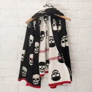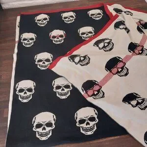 Mortar & Bone Skull Throw Blanket Black White Red Metallic 64" x 52" Reversible