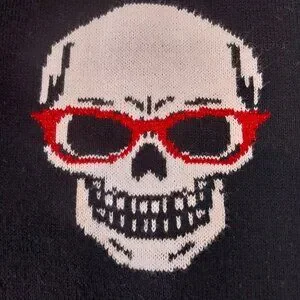 Mortar & Bone Skull Throw Blanket Black White Red Metallic 64" x 52" Reversible , small stain pointed in picture. Please see pictures for item measurements and condition. Buy today will ship next business day.