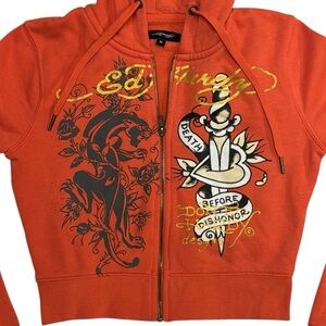RARE Ed Hardy Y2K Hoodie Double Sided Graphics Death Before Dishonor Crop Top Hoodie