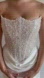 Stunning white gown adorned with intricate beadwork. Perfect for wedding reception. Never worn. Only tried on and did not like the fit, but they do not accept returns as it is custom made!