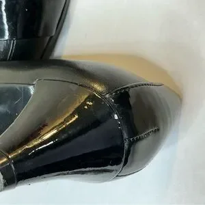 Pre-owned and in good condition although their are signs of wear on heels. Elevate your wardrobe with these sleek and stylish black kitten heels. Featuring a pointed toe, patent strap detail, and a low heel, these are the perfect pair for work, events, or a night out. Crafted with manmade uppers and a polished finish, they combine comfort and class effortlessly.