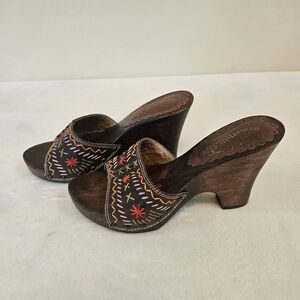 Deadstock Vintage Y2K Sketchers Women Sz 6 Leather Embroidered Wood Heel Sandals