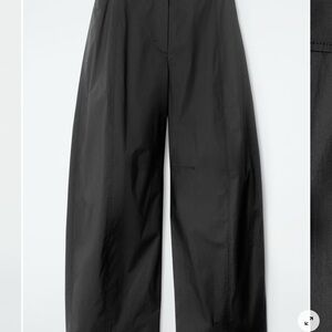 Crafted from a cotton blend, these modern pants are tailored in a relaxed shape with exaggerated barrel legs. The voluminous silhouette can be adjusted using the press-stud tabs at the waist and cuffs.