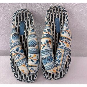 DESCRIPTION: Farm Rio Navy White Floral Puffy Rubber Sole Flip Flop, 9, very cushion sole,